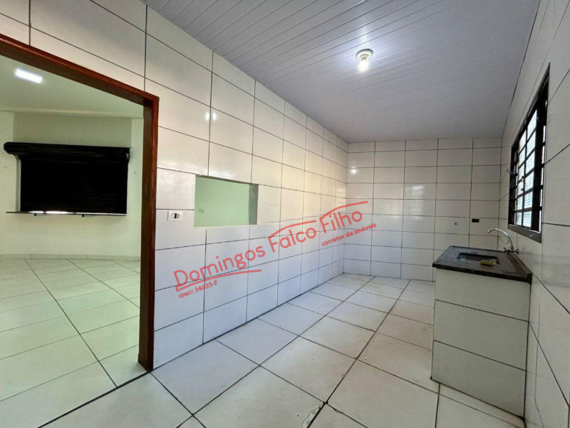 Casa e Salao Imóvel de esquina com 220 m² de construção, 3 banheiros, 2 cozinhas, balcão de alvenaria, sala, área de serviço coberta, despensa. Piso Frio.