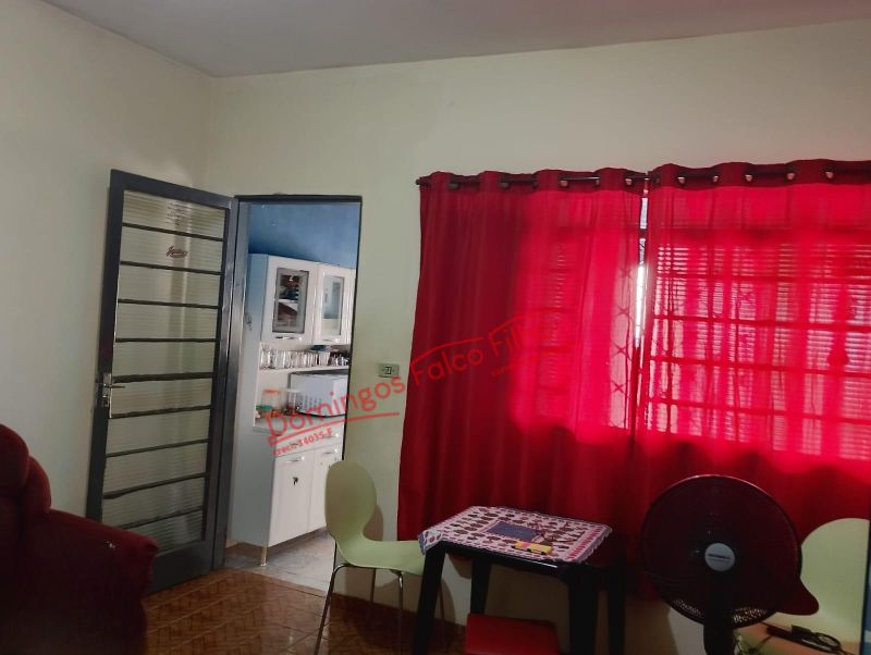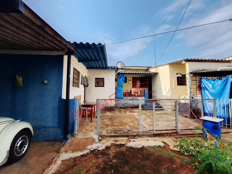 Casa simples com 01 dormitório, sala, cozinha, varanda, quarto de despejo, garagem, plantação de frutas.